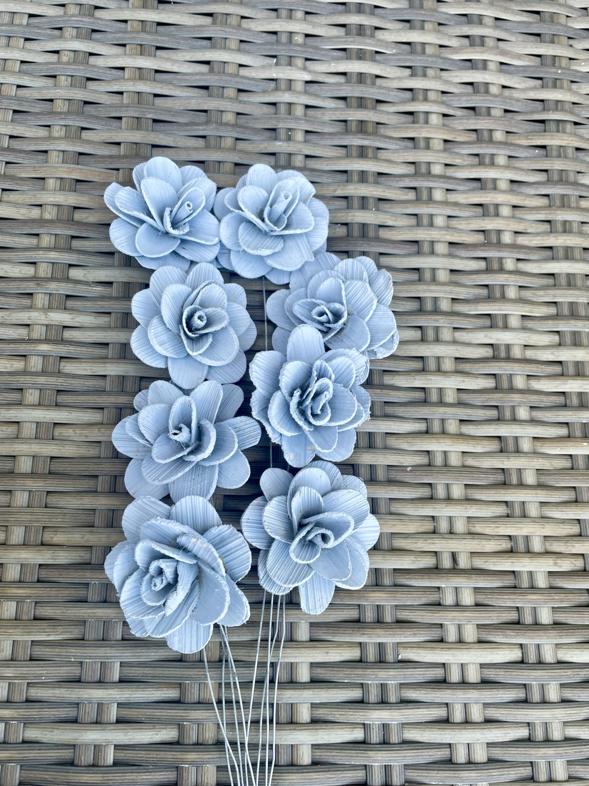 Akacia vopsita gri deschis de 6 cm. Buchetul contine 8 flori de lemn.