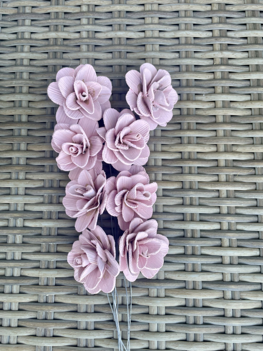 Akacia vopsita roz deschis de 6 cm. Buchetul contine 8 flori de lemn.