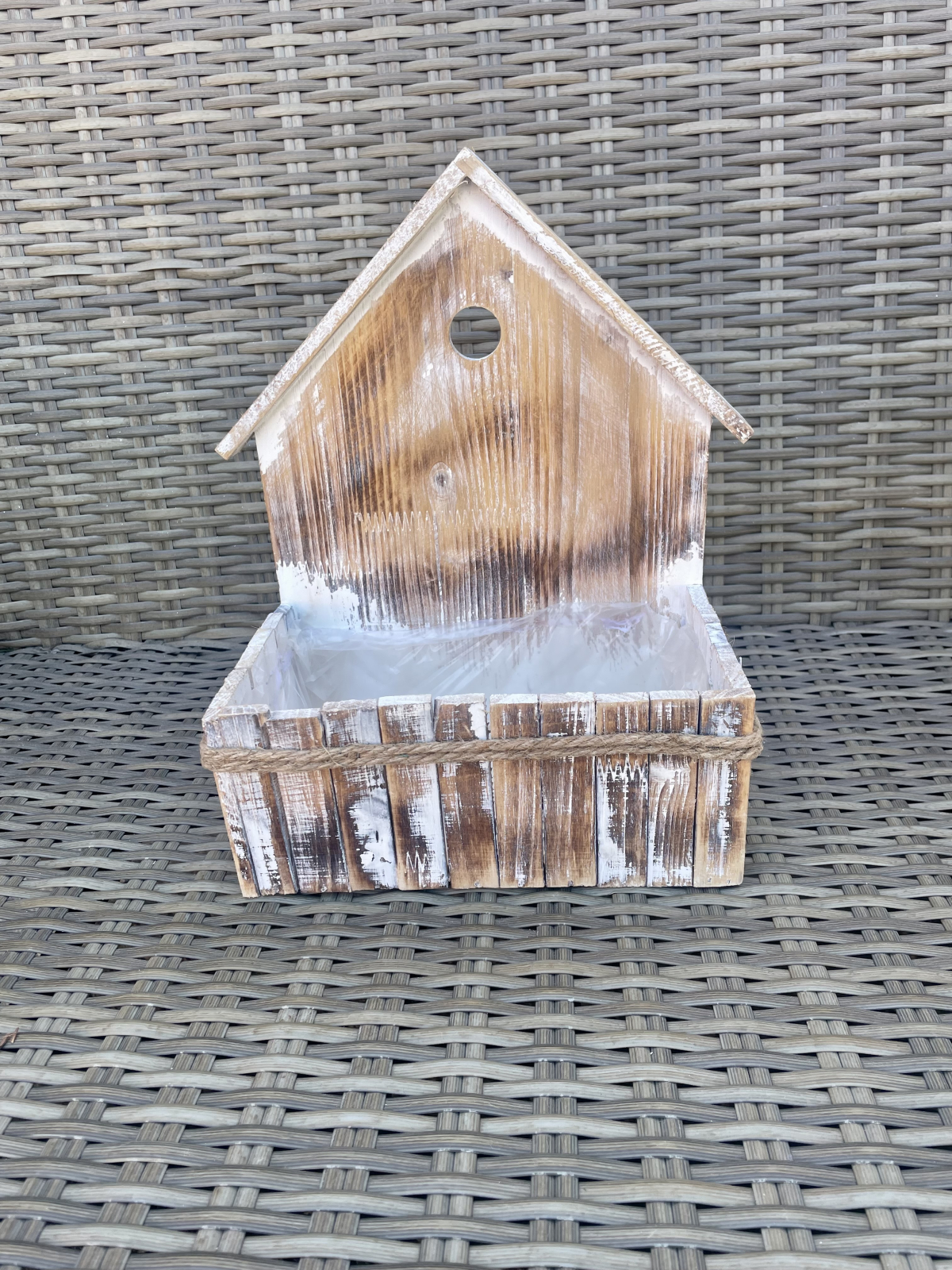 Cutie de lemn in forma de casuta, partea de jos este captusita cu folie , ideala pentru aranjamente florale.