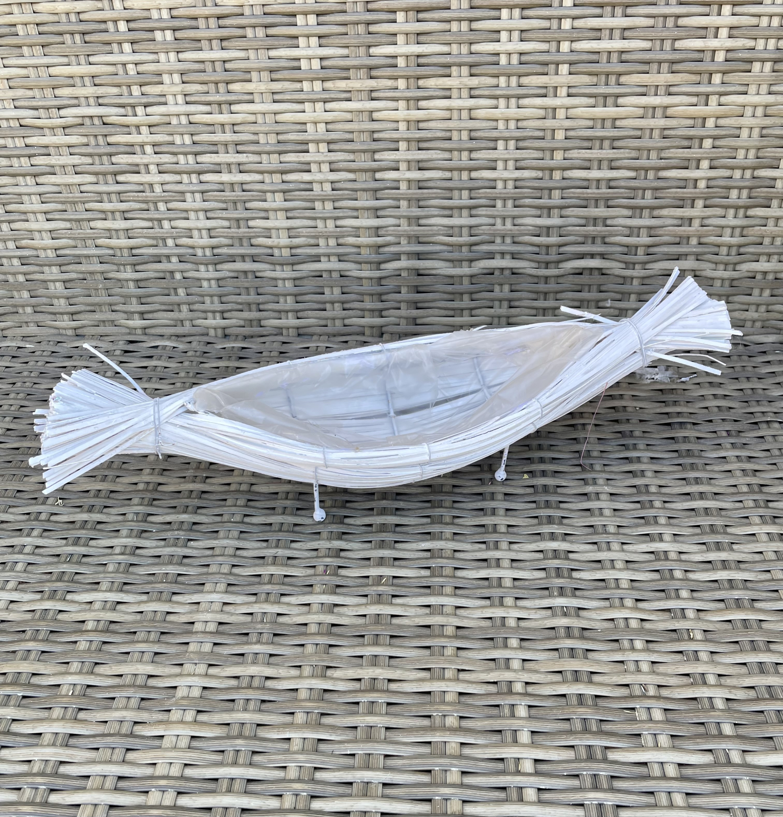 Cos de rachita vopsit alb in forma de barcuta.