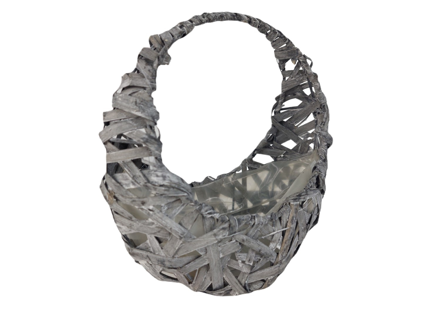 Cos de rachita vopsit gri antichizat in forma de barca cu toarta.