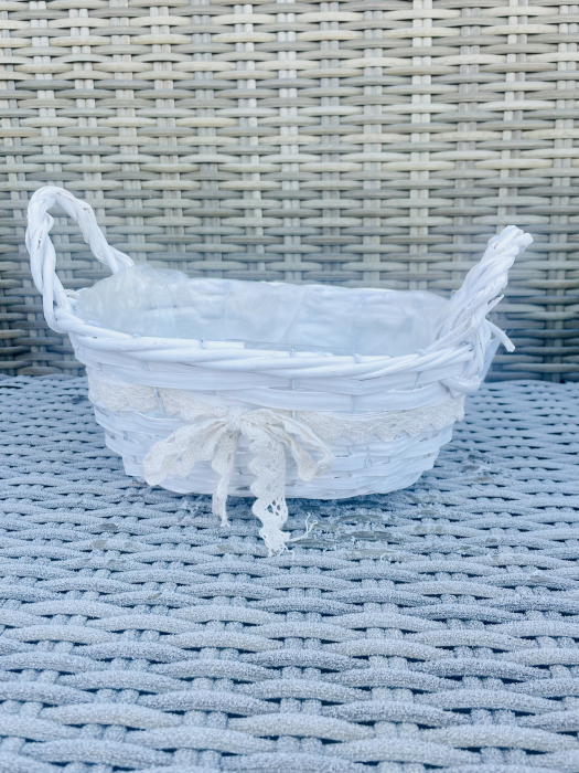 Suport de ghiveci cu folie la interior, din ratan alb impletit.