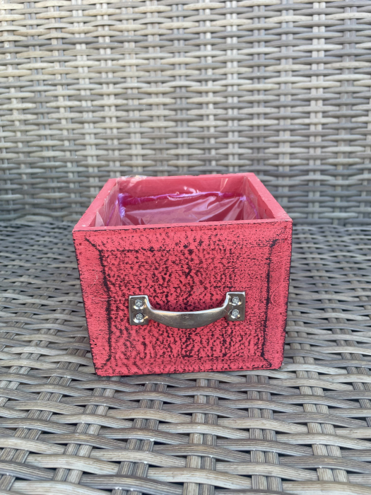 Cutie de lemn patrata vopsita rosu captusita la interior cu folie, ideala pentru aranjamente florale.