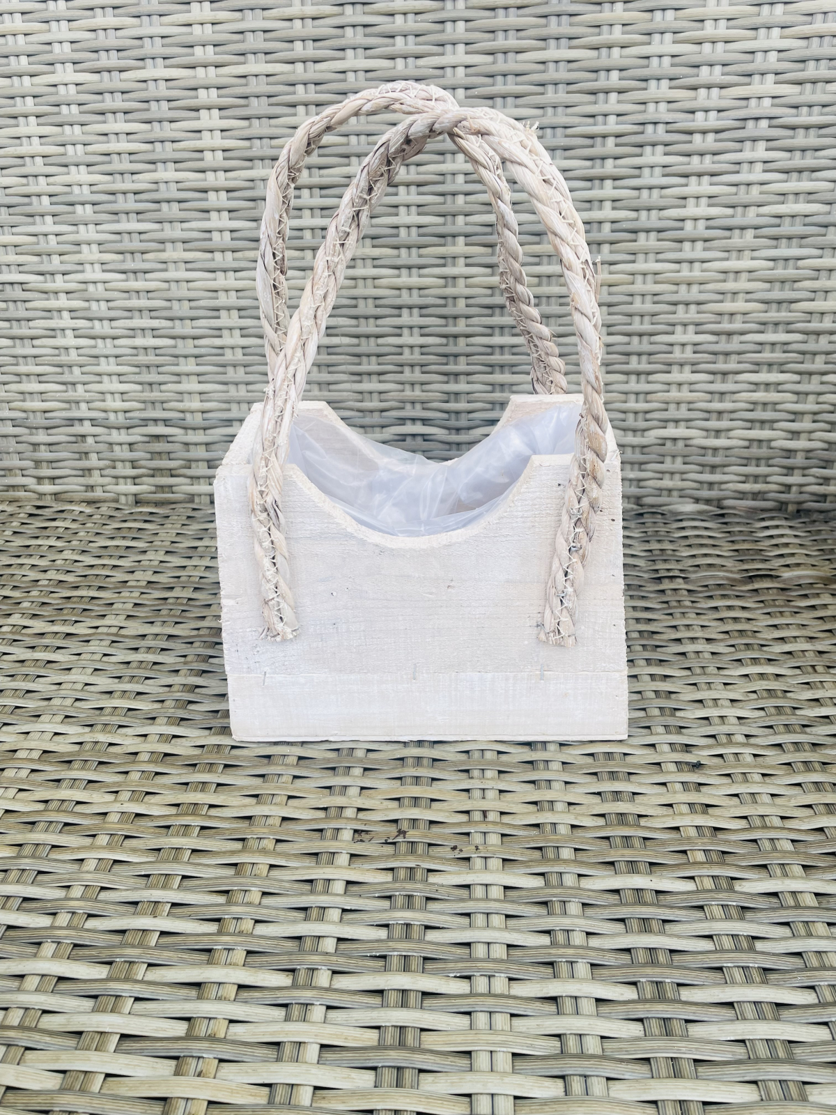 Cutie lemn tip gentuta, captusita la interior cu folie, ideala pentru aranjamente florale.