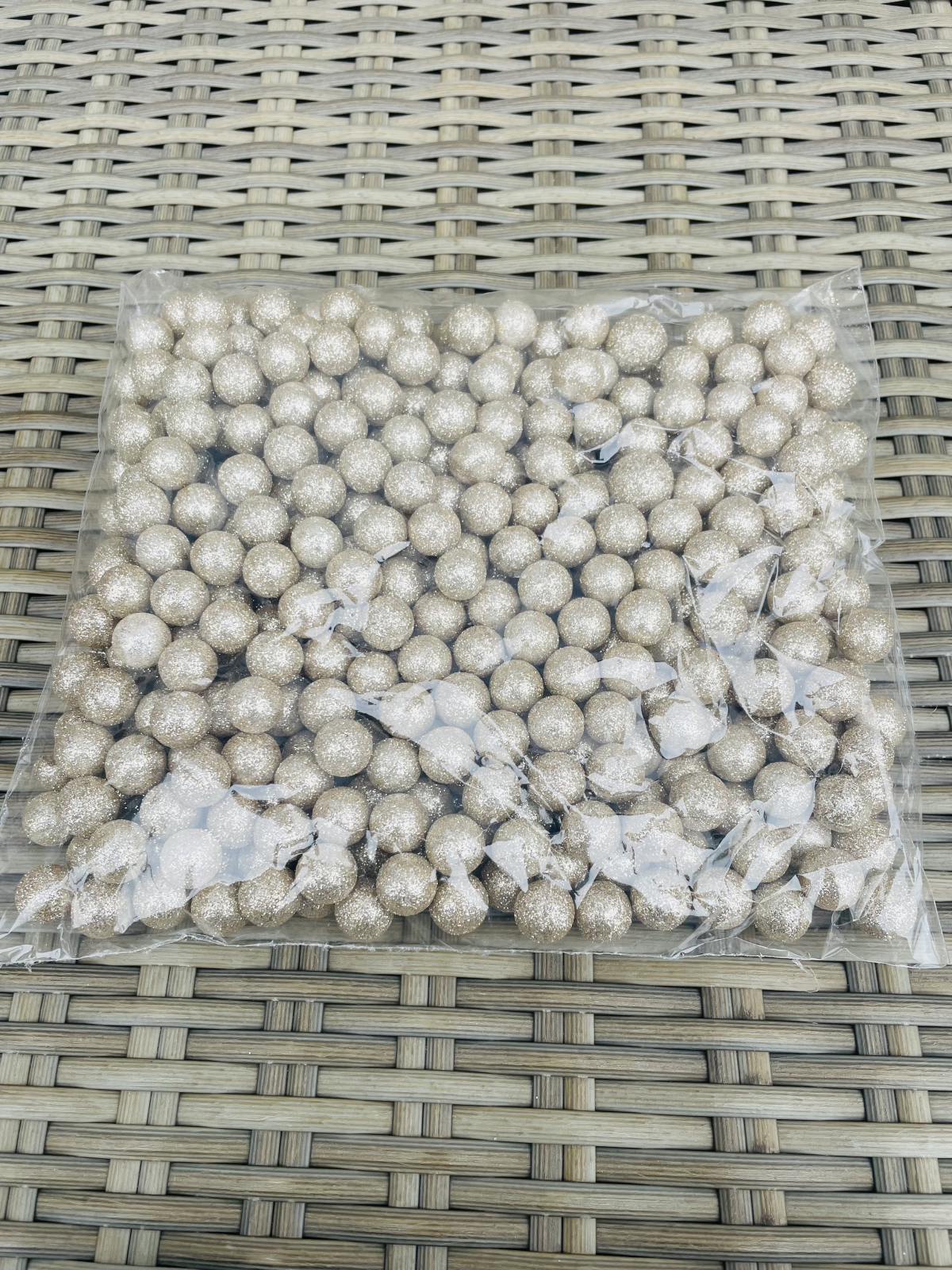 Punga cu bilute din polistiren cu sclipici champagne de 1.5 cm, decorative pentru aranjamente.