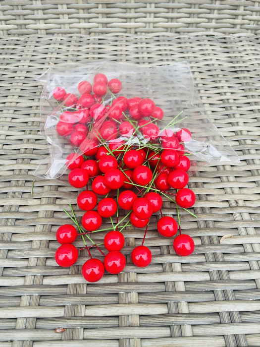 Punga cu bobite rosii din polistiren vopsite rosii  de 2 cm si tija.