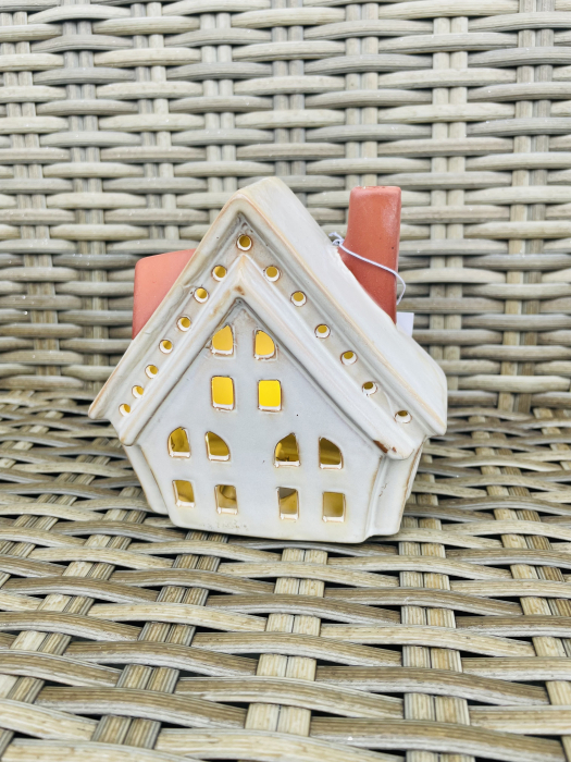 Casuta din ceramica cu lumina. Este ideala pentru aranjamente.