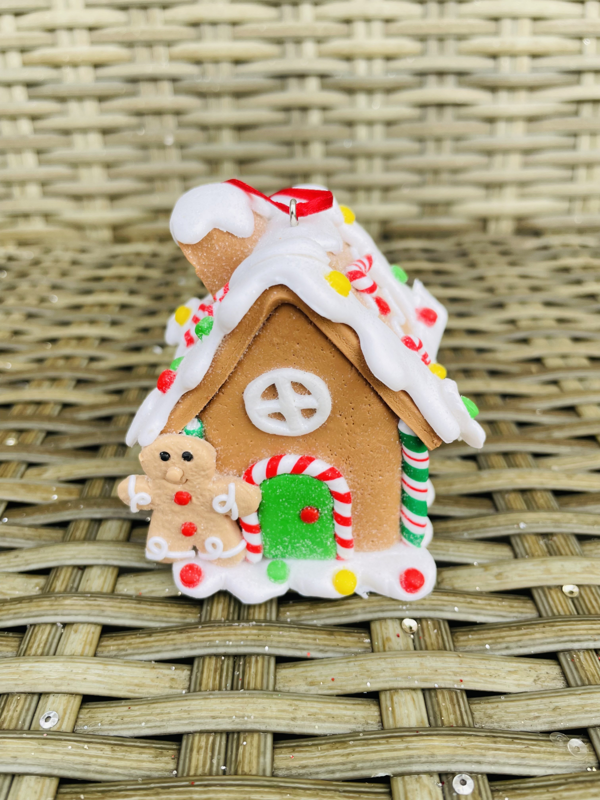 Casuta model turta dulce ce poate fi utilizata ca decoratiune sau ornament de Craciun.