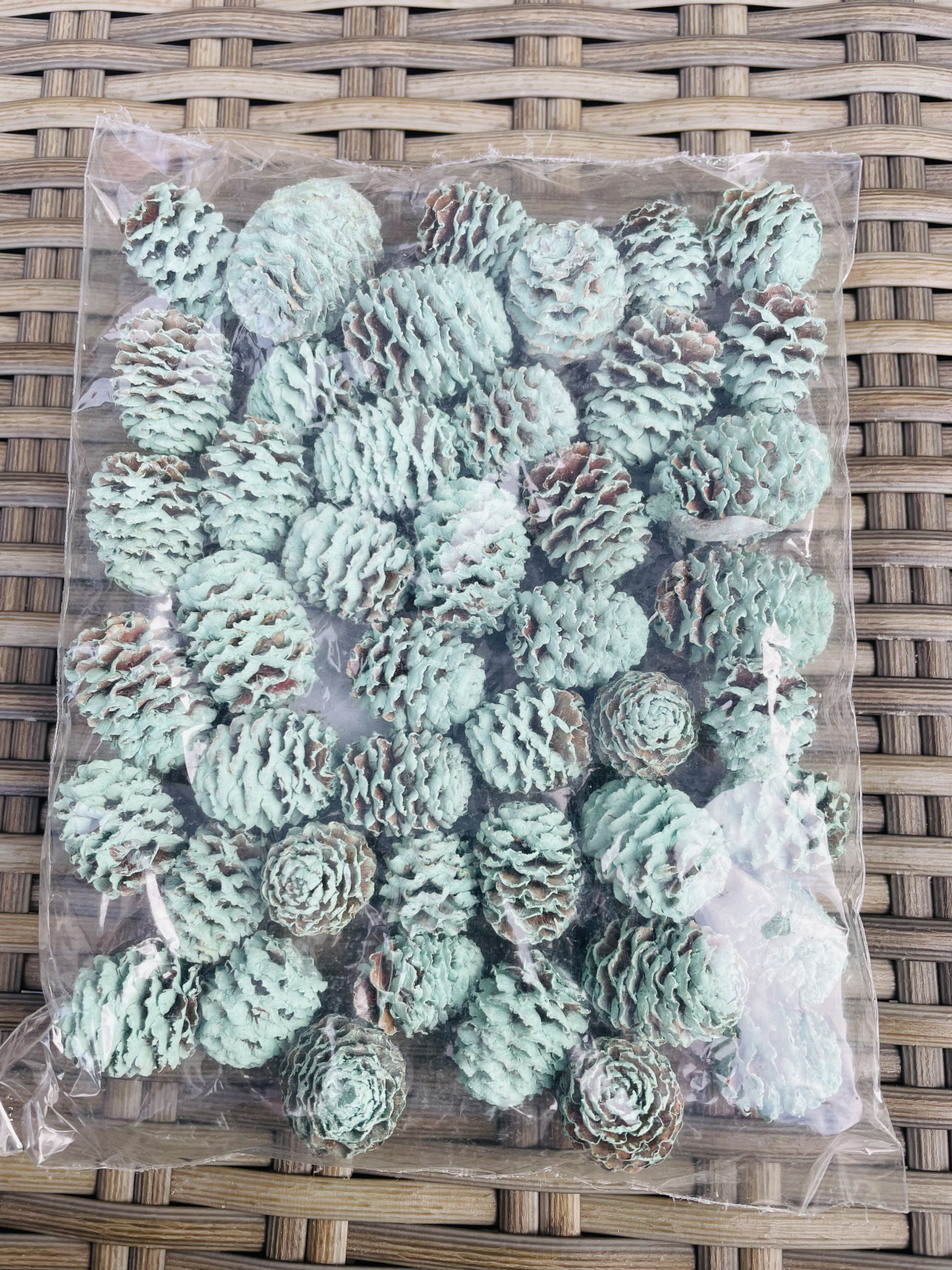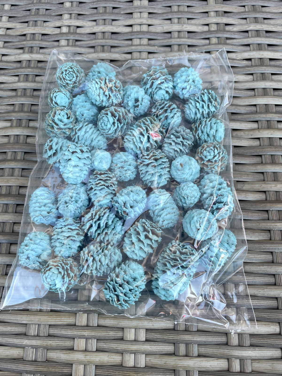 Conuri naturale vopsite albastru deschis, ideal pentru aranjamente de Craciun.