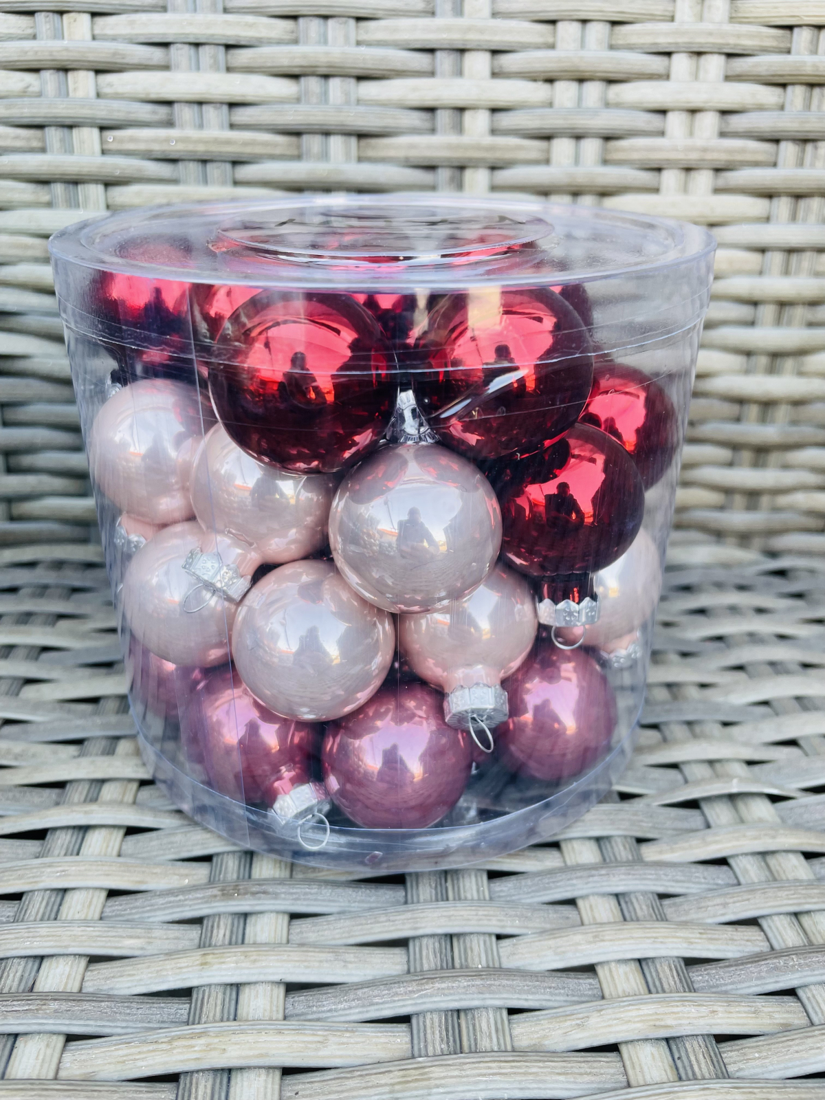 Cutie cu globulete din sticla de 3 cm, culoare mix 1, cantitate: 45 bucati.
