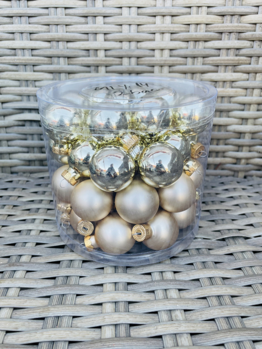 Cutie cu globulete din sticla de 3 cm, culoare mix 14, cantitate: 45 bucati.