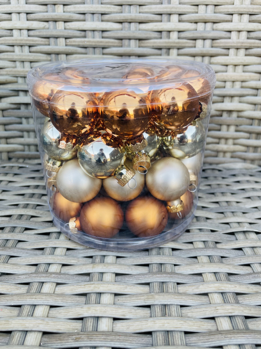 Cutie cu globulete din sticla de 3 cm, culoare mix 3, cantitate: 45 bucati.