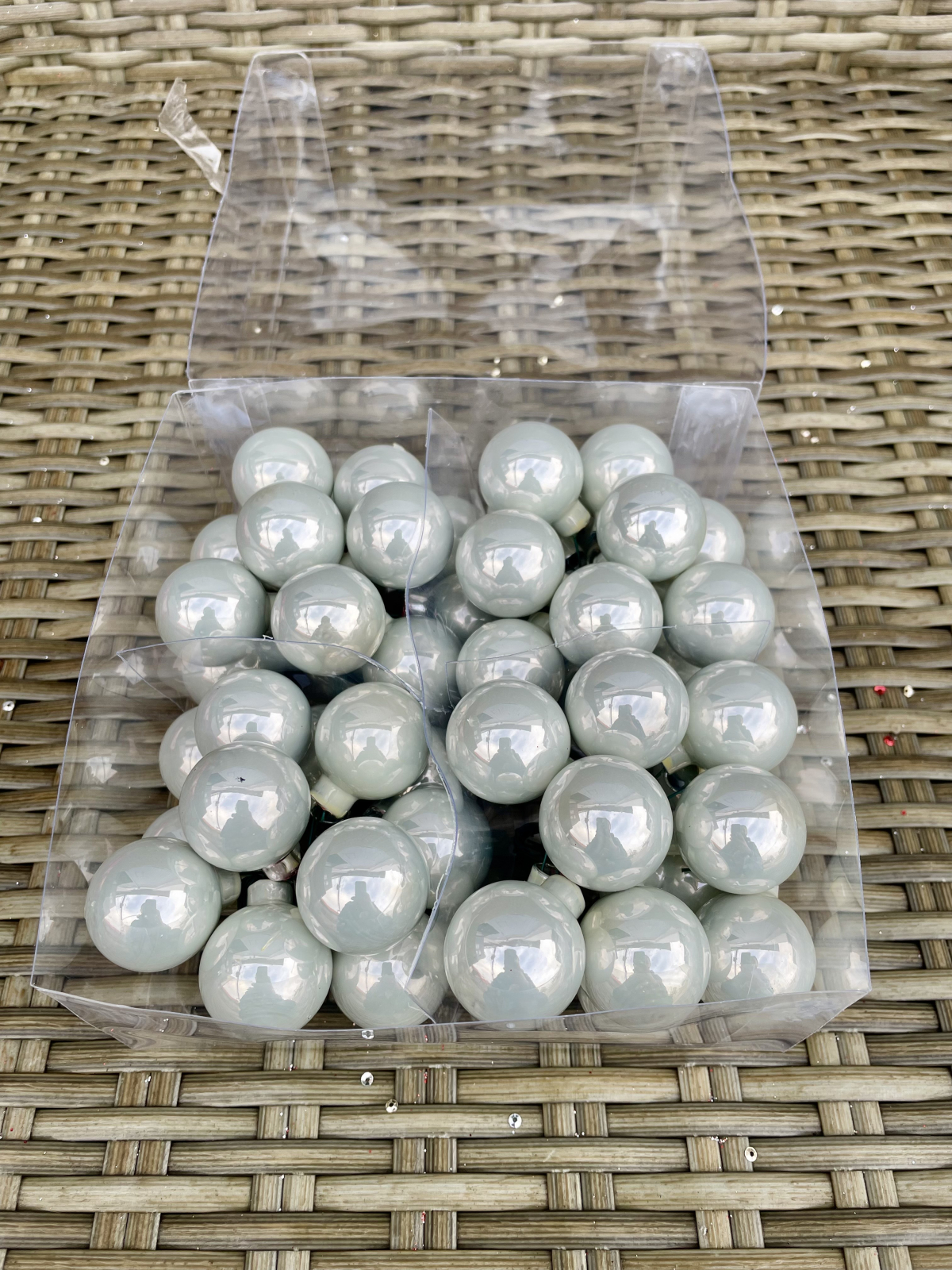 Globuri gri/aqua lucioase sticla 48 buc/ 3 cm