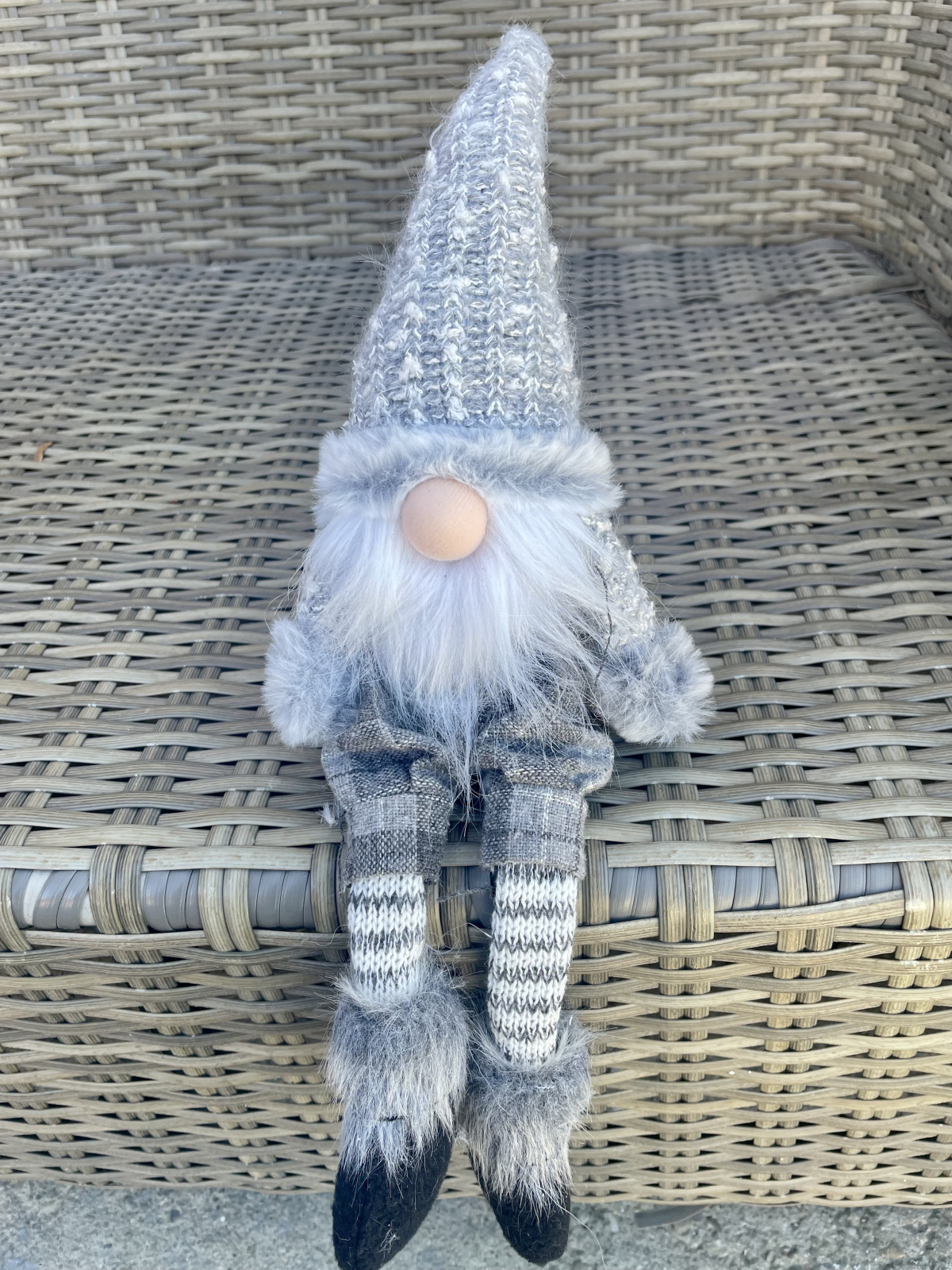 Gnom gri decorativ din material textil, ideal pentru aranjamente si decoratiuni de Craciun.