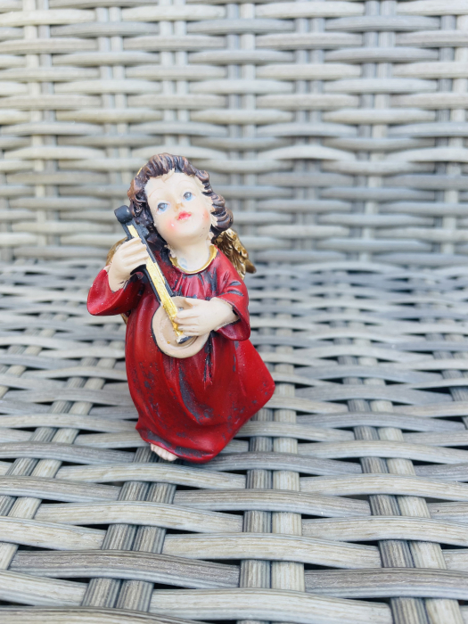Inger din ceramica care canta la chitara avand inaltimea de 9 cm.