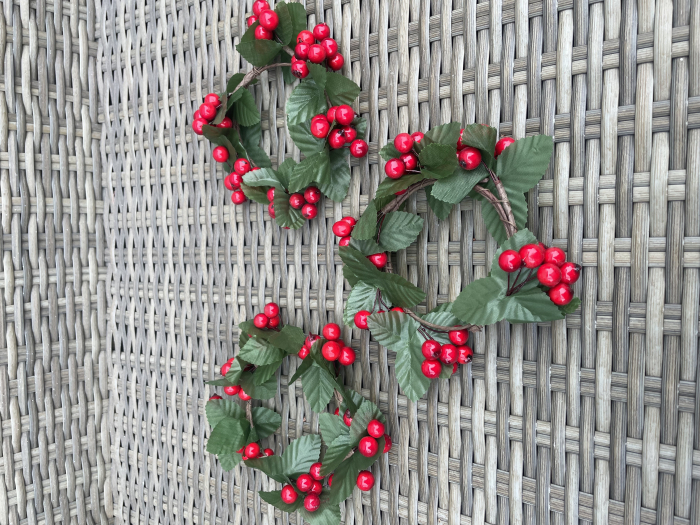 Mini coronita cu Fructe rosii de plastic cu diametru 12 cm.