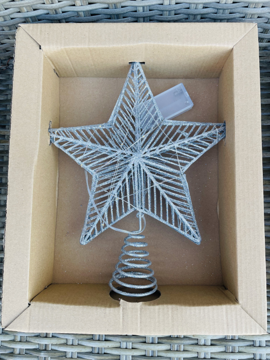 Decoratiune varf de brad argintiu cu sclipici si instalatie pe baterii.