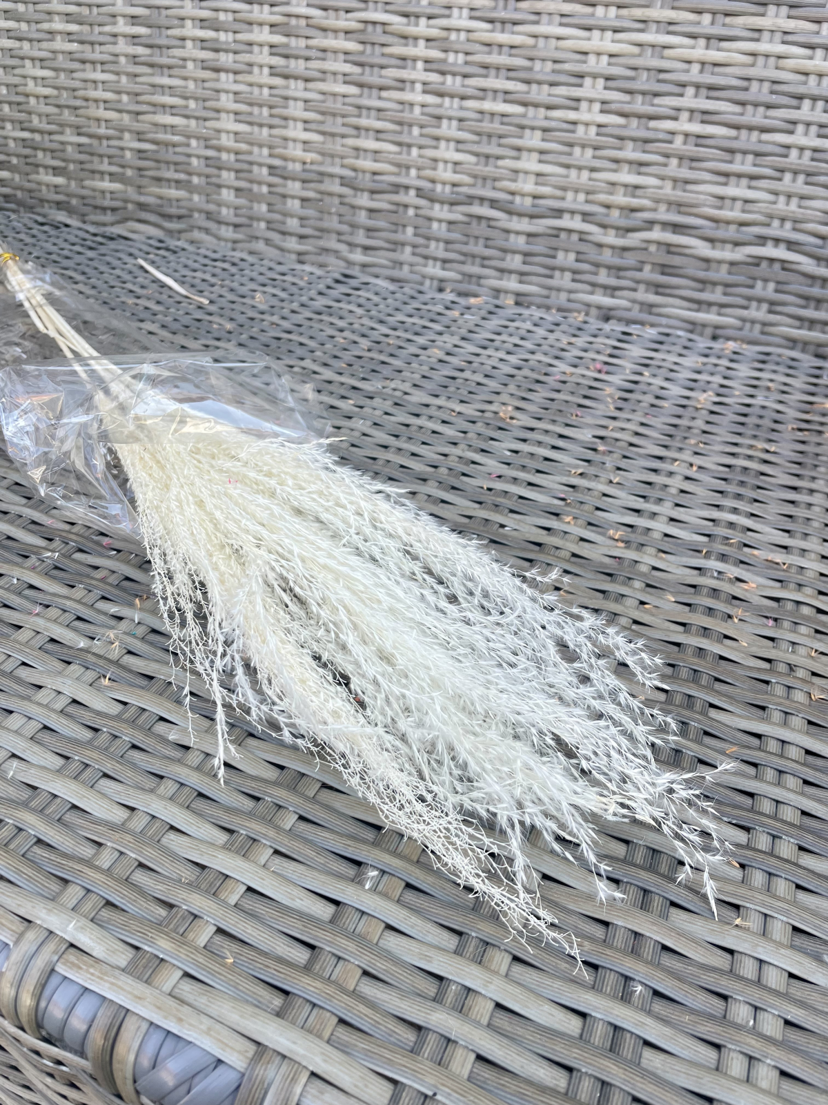 Pachet cu 5 fire de planta mischantus vopsita alb. Face parte din categoria pampas si poate fi utilizata in buchete si aranjamente.