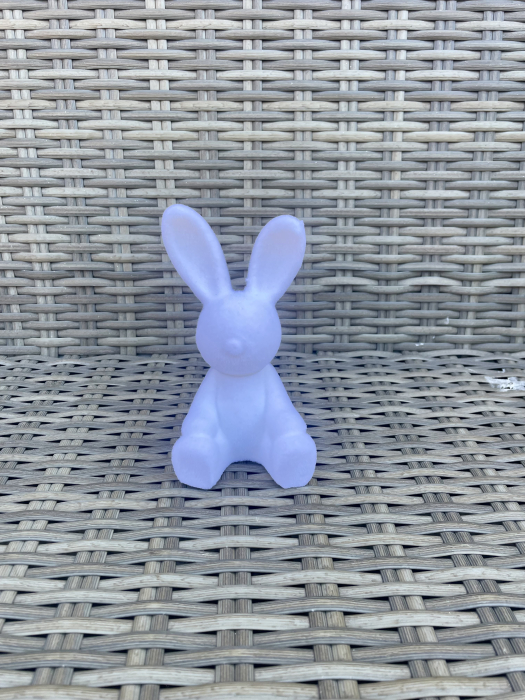 Iepure decorativ din catifea, alb, model in sezut, ideal pentru aranjamentele de Paste si primavara.