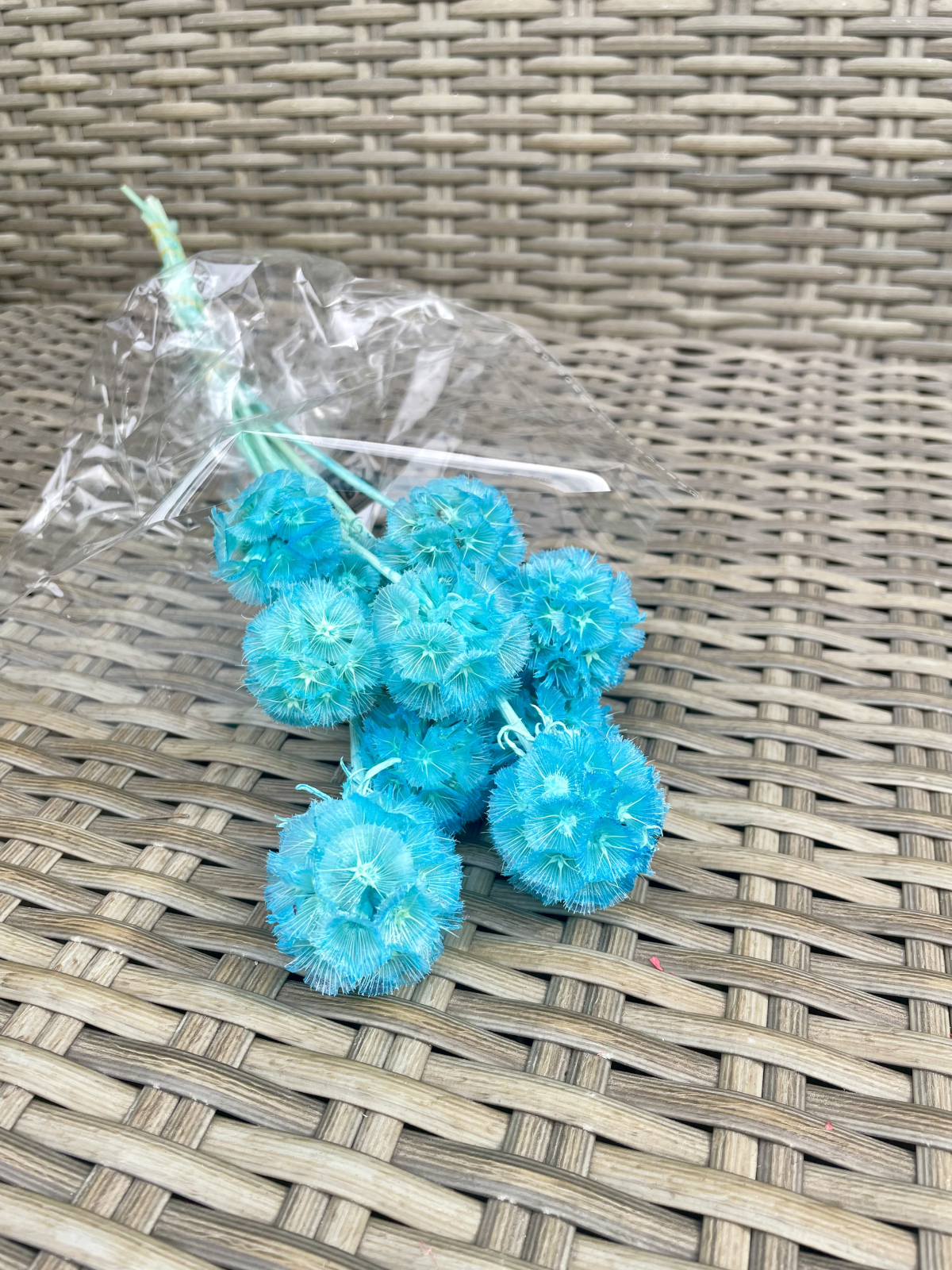 Pachet de 10 fire scabiosa stelata vopsita albastru, baby blue, stablizata.