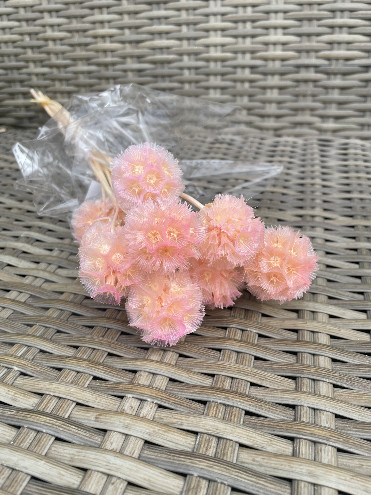 Pachet de 10 fire scabiosa stelata vopsita roz deschis, stablizata.