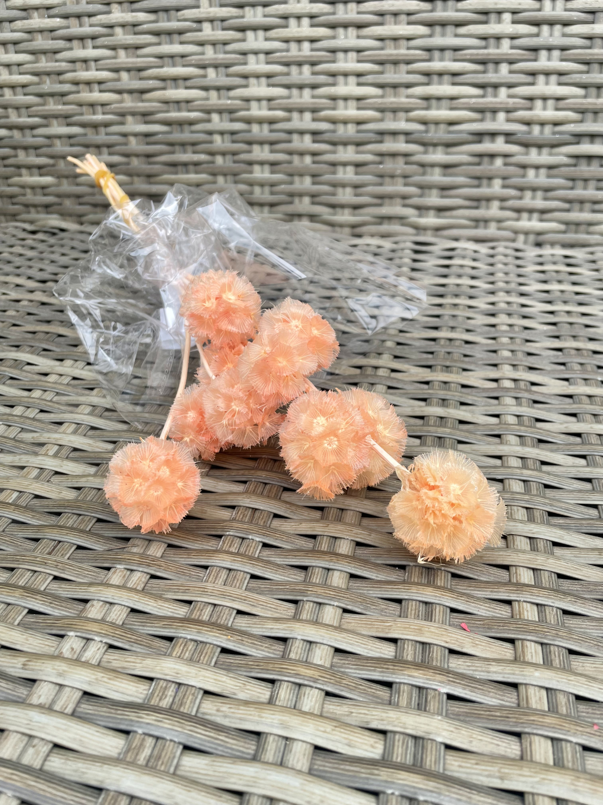 Pachet de 10 fire scabiosa stelata vopsita portocaliu deschis, stablizata.