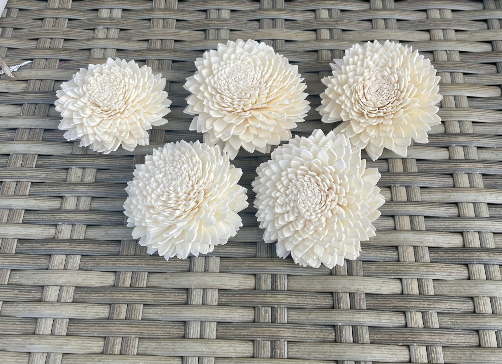 Flori realizate hand-made din material natural, lemn de shola cu textura moale. Nuanta este natur-ivoire, iar dimensiunile capetelor  intre 5-7 cm. Se pot atasa tije de sarma floristica si sunt ideale pentru buchete, lumanari si aranjamente florale.